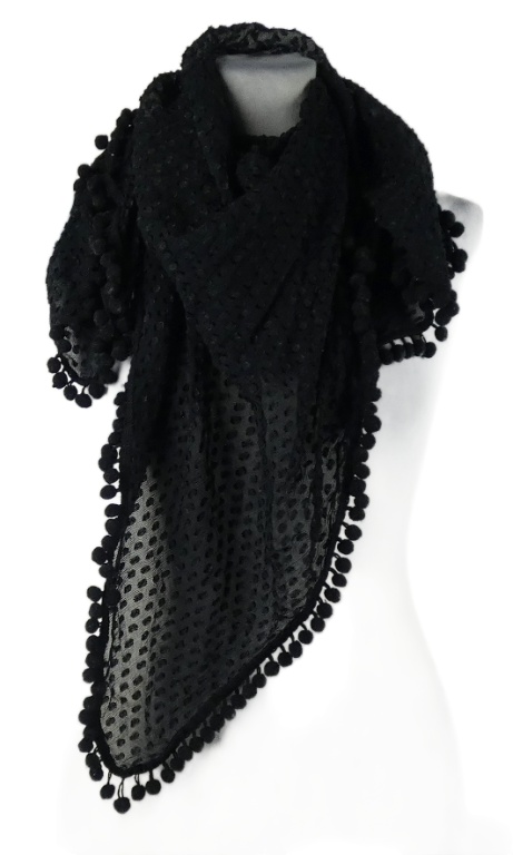 Dámský černý puntíkovaný šátek s bambulkami