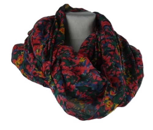 Dámská černo-červeno-zelená vzorovaná límcová šála