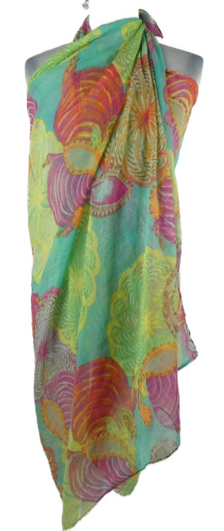 Dámské zeleno-růžovo-oranžové vzorované pareo