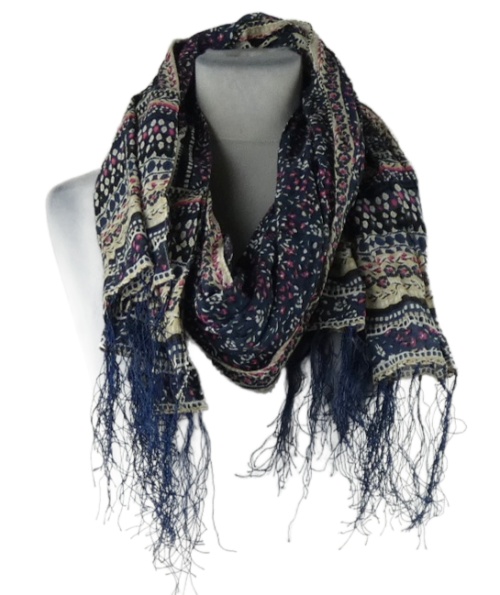 Dámská tmavomodro-barevná vzorovaná šála s třásněmi