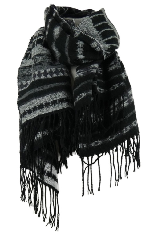 Dámská šedo-černá vzorovaná teplá šála s třásněmi