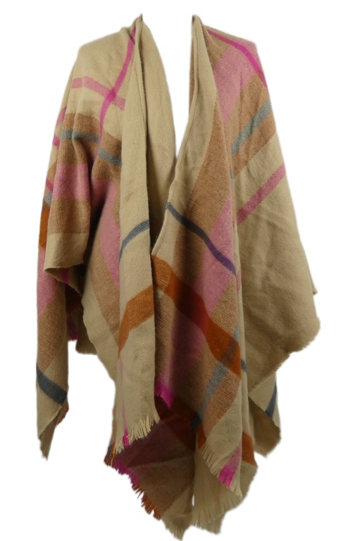 Dámský béžovo-růžový kostkovaný pletený pléd