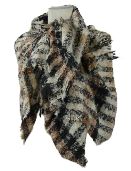 Dámská černo-béžovo-růžová kostkovaná teplá šála