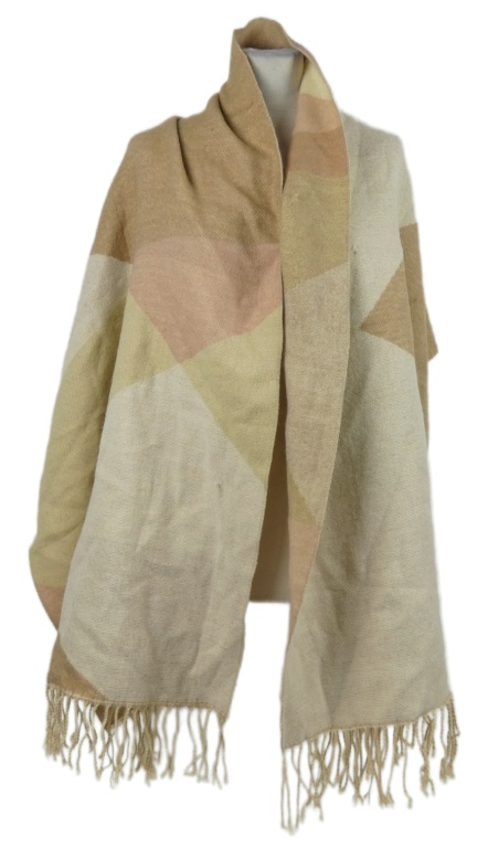 Dámská béžovo-růžová vzorovaná šála s třásněmi