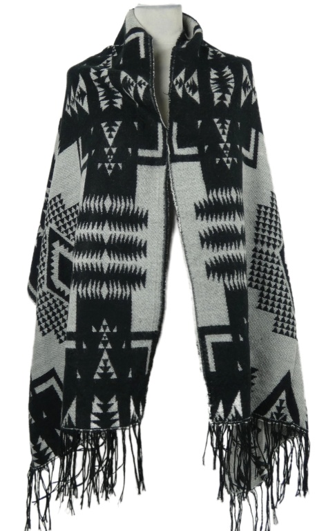 Dámská šedo-černá vzorovaná šála s třásněmi