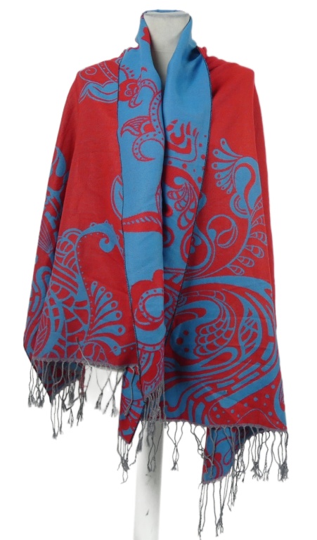 Dámská červeno-modrá vzorovaná šála s třásněmi