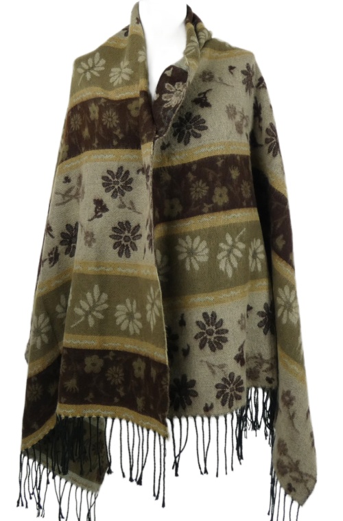 Dámská béžovo-hnědá vzorovaná šála s třásněmi