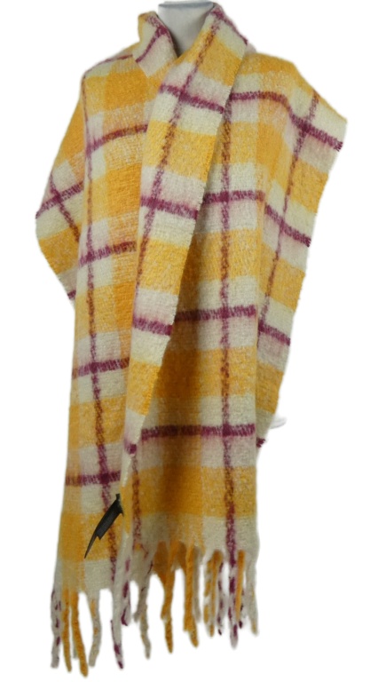 Dámská oranžovo-vínová kostkovaná vlněná šála s třásněmi Mango