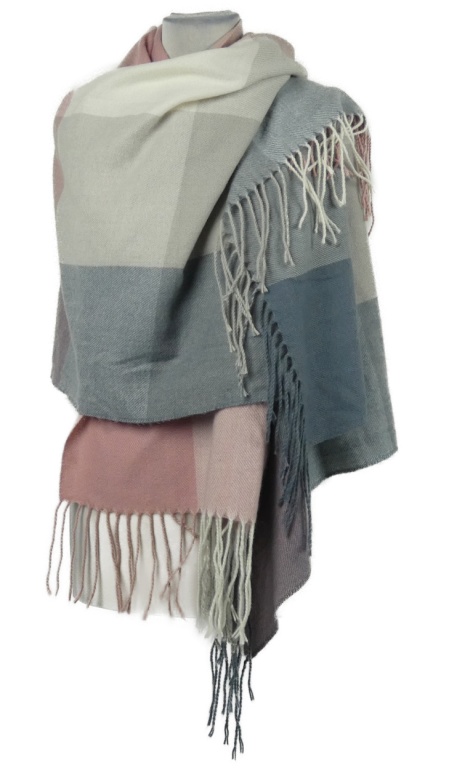 Dámská šedo-růžovo-bílá kostkovaná šála s třásněmi