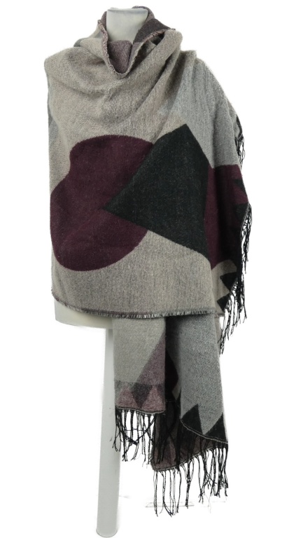 Dámská šedo-vínová vzorovaná teplá šála s třásněmi H&M