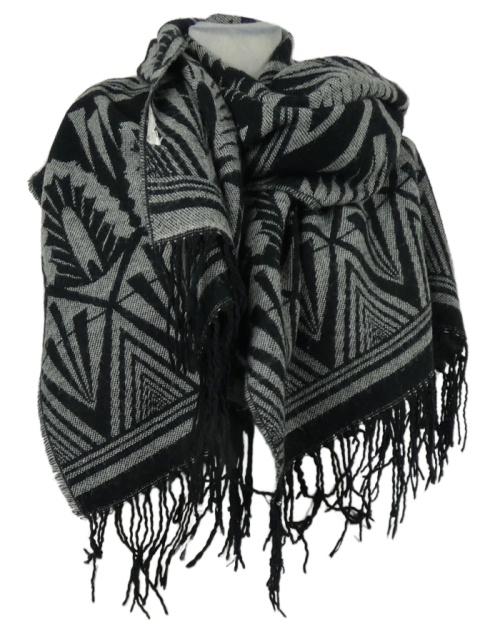 Dámská šedo-černá vzorovaná šála s třásněmi