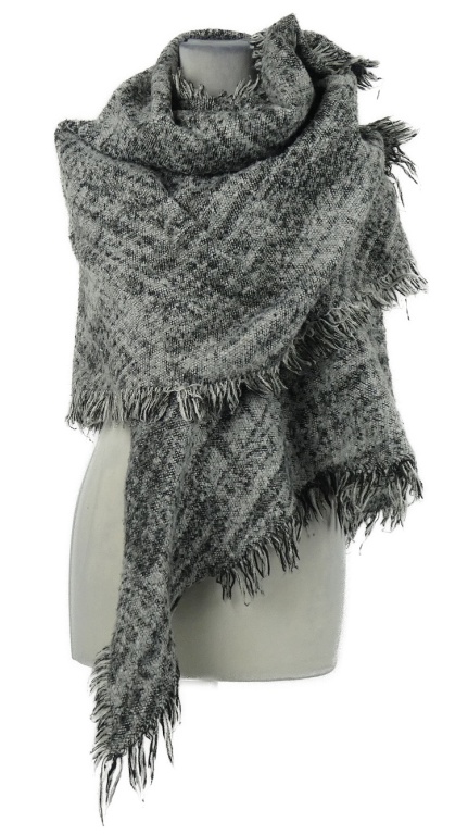 Dámský černo-šedý vzorovaný pléd s třásněmi