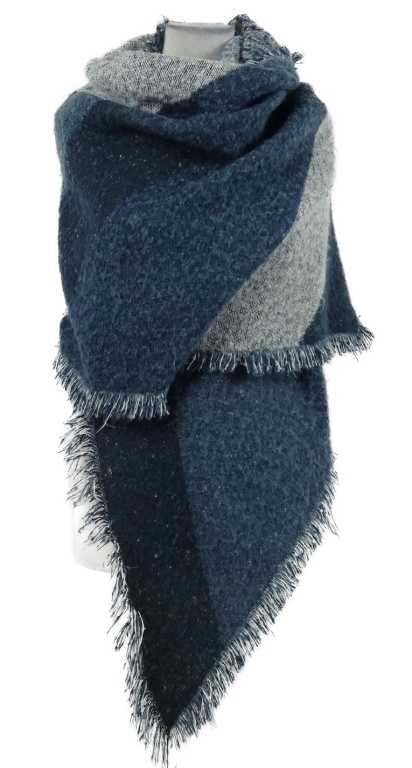 Dámský modro-bílý vzorovaný pléd s roztřepením