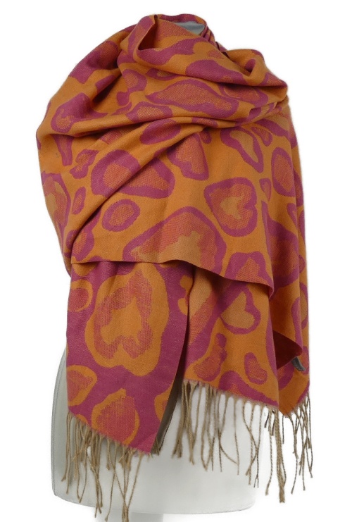 Dámská oranžovo-růžová vzorovaná šála s třásněmi