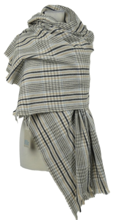 Nové - Dámská béžovo-modro-šedá kostkovaná šála