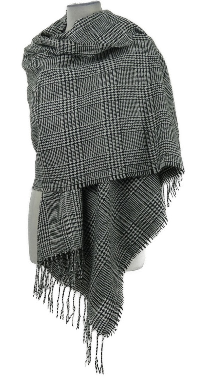 Dámská černo-bílá kostkovaná maxi šála s třásněmi