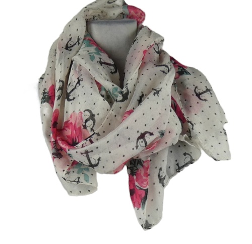 Dámská bílá květovaná šála s kotvami
