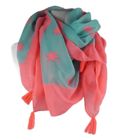 Dámský tyrkysovo-růžový hvězdičkovaný šátek s třásněmi