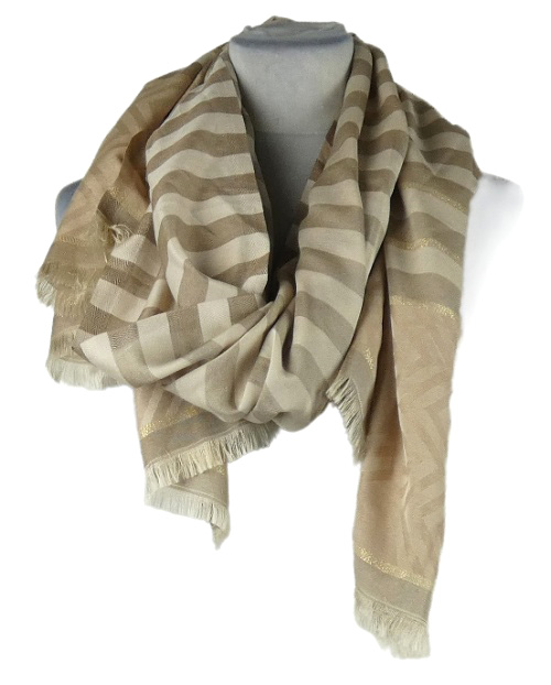 Dámský béžovo-hnědý pruhovaný šátek střásněmi
