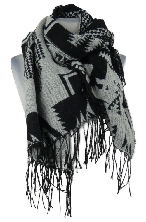 Dámská černo-šedá vzorovaná šála s třásněmi