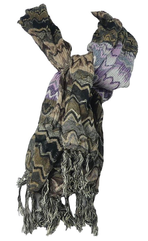 Dámská hnědo-lila vzorovaná šála s třásněmi