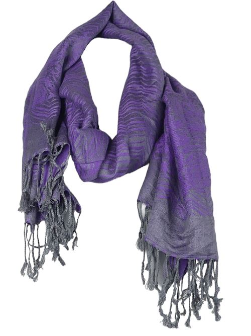 Dámská šedo-fialová vzorovaná šála s třásněmi