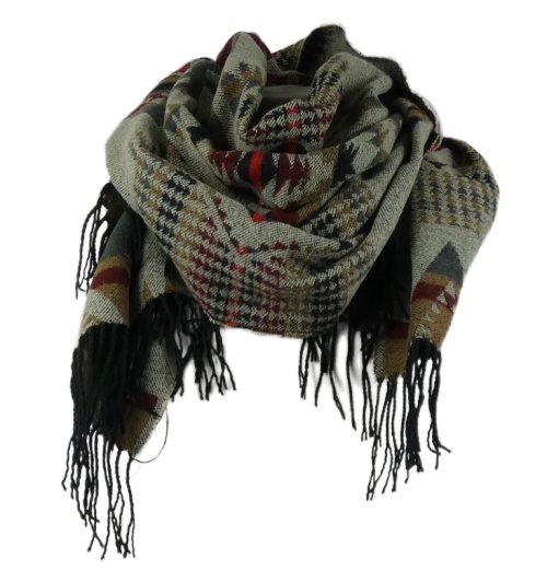 Dámská béžovo-barevná vzorovaná teplá šála s třásněmi