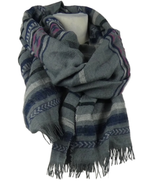 Dámská šedo-tmavomodrá vzorovaná šála s třásněmi