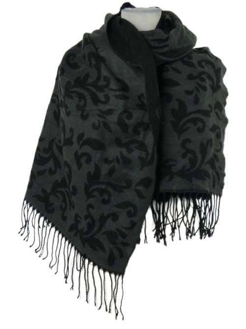 Dámská šedo-černá vzorovaná šála s třásněmi