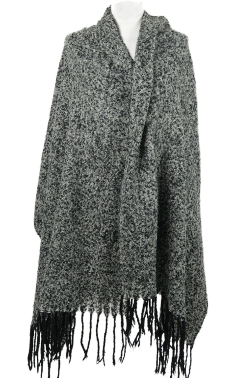 Dámská černo-šedá melírovaná pletená šála s třásněmi Pieces