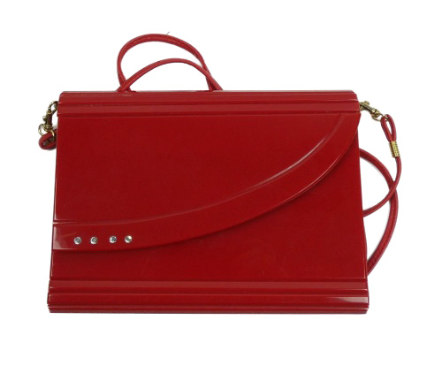 Dámské červené plastové psaníčko s kamínky