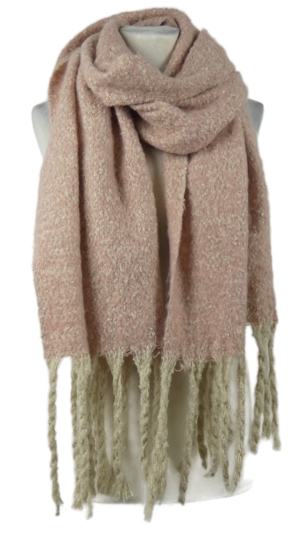 Dámská světlerůžovo-smetanová šála s třásněmi