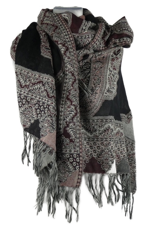 Dámská vínovo-černá vzorovaná šála s třásněmi