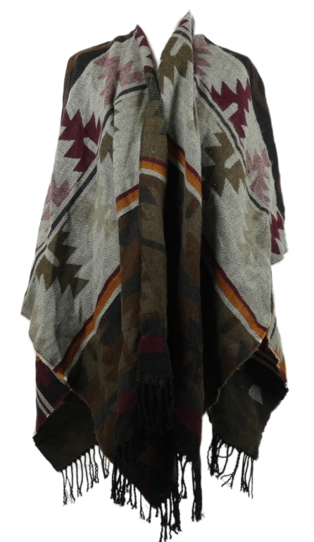 Dámská hnědo-šedá vzorovaná maxi teplá šála s třásněmi