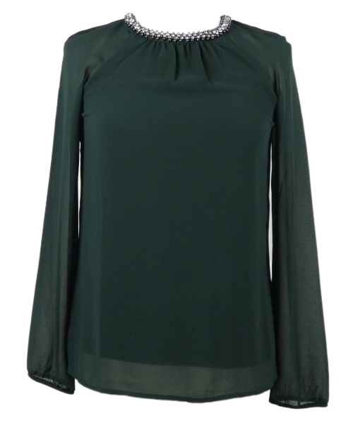 Dámská khaki šifonová halenka s korálky a kamínky S. Oliver
