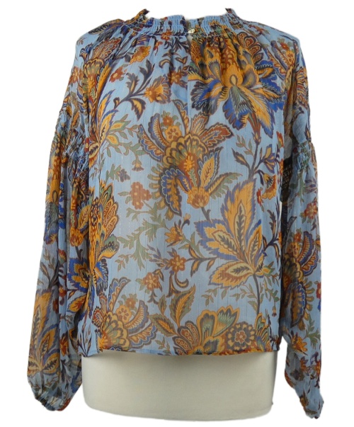 Dámská světlemodro-oranžová vzorovaná šifonová crop halenka Rich&Royal