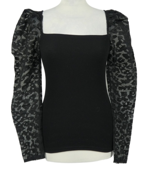 Dámská černá halenka s organzovými vzorovanými rukávy New Look