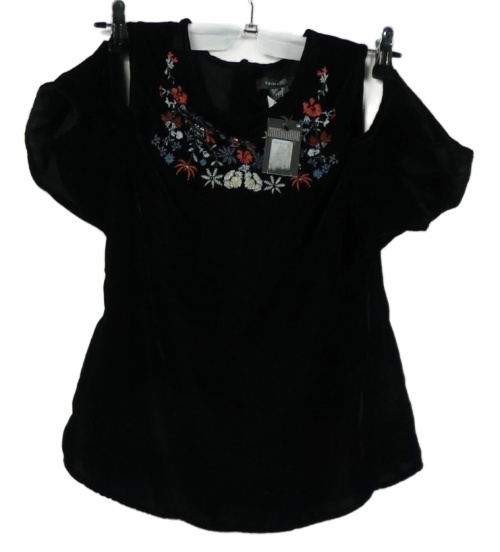 Dámská černá sametová halenka s výšivkou a volnými rameny Primark