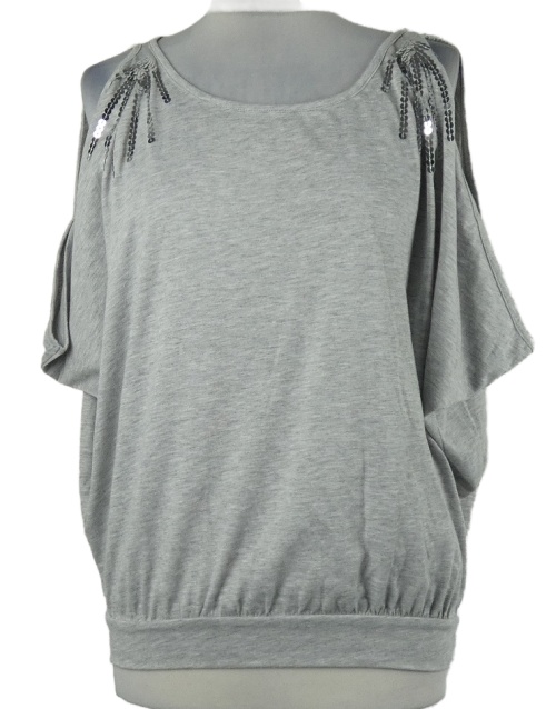 Dámská šedá balonová halenka s volnými rameny a flitry