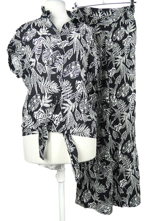 2set- Dámská černo-bílá vzorovaná halenka s uzlem + palazzo kalhoty