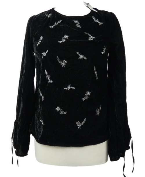 Nové - Dámská černá sametová halenka s kytičkami Primark