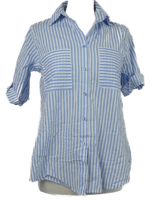 Dámská světlemodro-bílá pruhovaná halenka s rolovacími rukávy Hailys