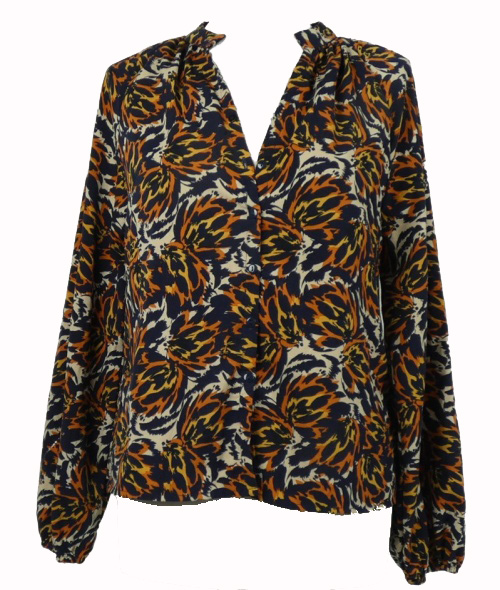 Dámská tmavomodro-oranžovo-žlutá vzorovaná halenka Object