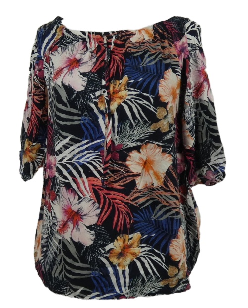 Dámská tmavomodrá květovaná halenka s lodičkovým výstřihem Comma