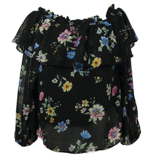 Dámská černá květovaná šifonová halenka s lodičkovým výstřihem H&M