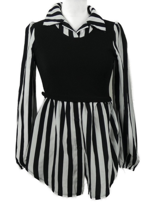 Dámská černo-bílá pruhovaná halenková tunika s vestou Shein