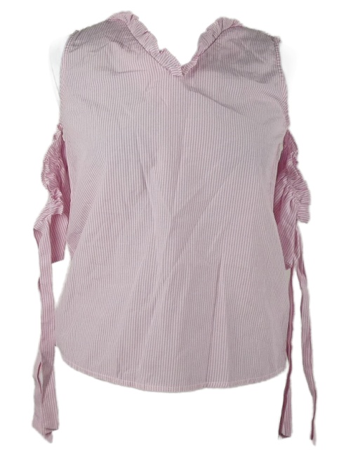 Dámská růžovo-bílá pruhovaná halenka s volnými rameny a zavazováním Koton