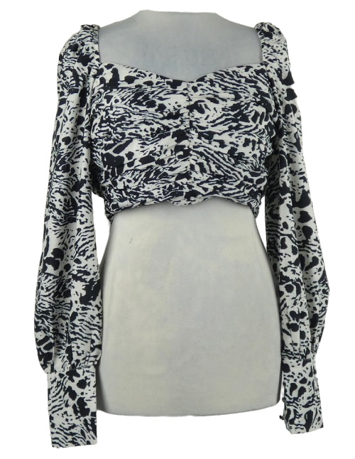 Dámská bílo-černá vzorovaná crop halenka In the Style