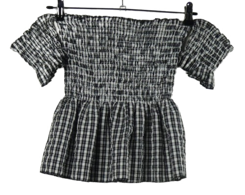 Dámská černo-bílá kostičkovaná žabičková crop halenka s volnými rameny