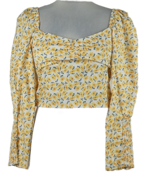Dámská bílo-žlutá kytičkovaná crop halenka